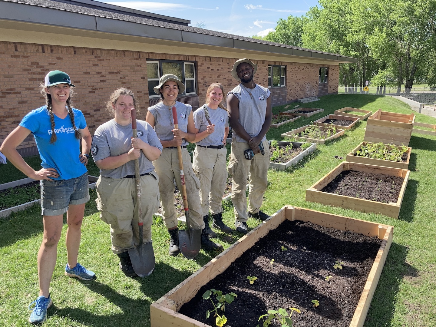 | | NCCC worked with partners such as the City of Livingston Parks Department, Park County Health Department, Farm to School, Park County Community Foundation, Livingston Food Resource Center, Western Sustainability Exchange, Livingston Bike Club, Livingston School District, Abuse Support and Prevention Education Network, Absaroka Beartooth Wilderness Foundation, Luccock Park Camp, Montana Roots, Paradise Permaculture, and Rotary Club. The NCCC crew also jumped in and helped residents and businesses immediately following the 2022 flood. In the three summers they were in Park County, NCCC service members contributed over 7,400 hours of service, bringing an estimated $220,000+ value to our community. Overall, some of NCCC's impact included planting 268 trees, diverting 1,472 gallons of compost from the waste stream, and collecting and disposing of 6,338 pounds of trash. These teams built and maintained school food gardens, educated in the classrooms, served youth meals, restored and maintained acres of parks and trails, and provided direct support for community organizations and agencies, helping us build a stronger, more resilient Park County. You can read more details about their projects below. |